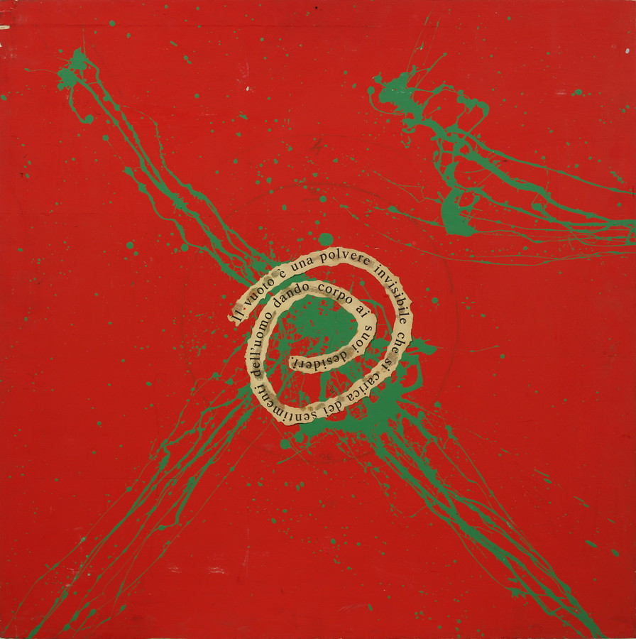 CARREGA UGO (n. 1935) SENZA TITOLO. 1989. tecnica mista collage su tavola. Cm 68,00 x 68,00. sul retro: firma e data