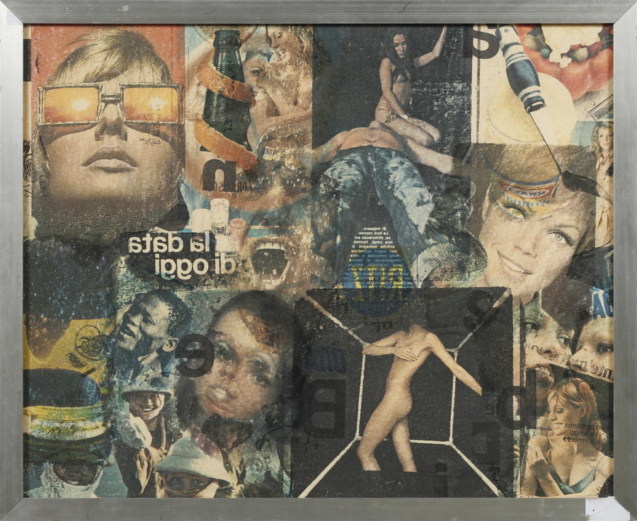 MALQUORI ROBERTO (n. 1929) LA DATA DI OGGI. 1969. Decollage su cartone. Cm 54,00 x 44,00. firma e data