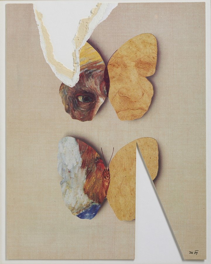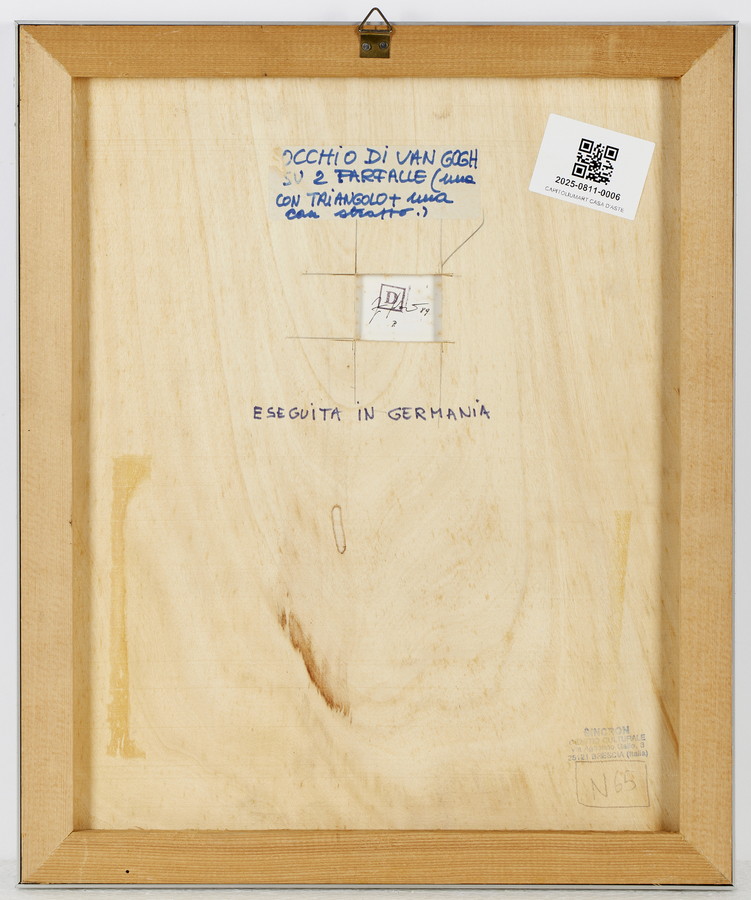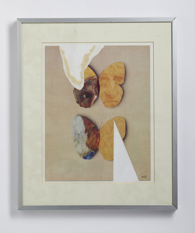 KOLAR JIRI (1914 - 2002) OCCHIO DI VAN GOGH SU DUE FARFALLE . 1989. tecnica mista su carta. Cm 23,00 x 29,50. firma e data