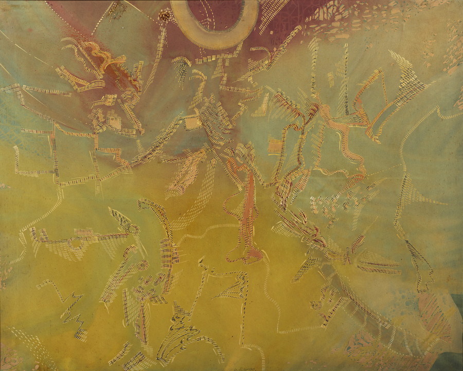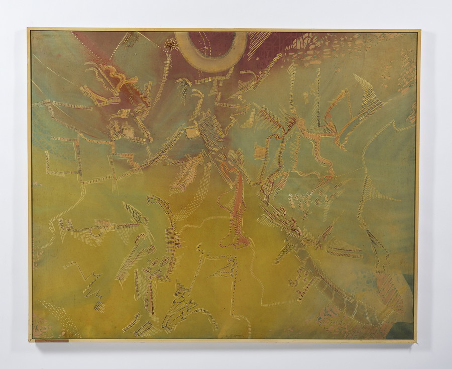 DANGELO SERGIO (1932 - 2022) RUMORE DI FOGLIE ALL'INIZIO DI UNA PRECOCE PRIMAVERA . 1965. Olio su tela. Cm 161,00 x 130,00. firma e data
