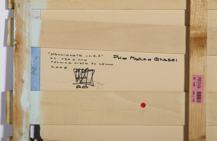 PHO (MARCO GRASSI) (n. 1976) STACCIONATA L 23. 2008. Tecnica mista su legno. Cm 110,00 x 130,00. sul retro: firma, data e titolo