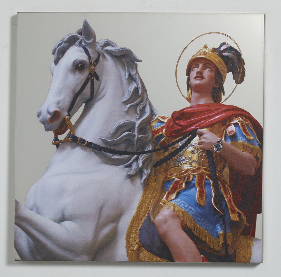 MARCHEGIANI PEP (n. 1971) SAN GIORGIO CON IL ROLEX. 2017. stampa quadricromatica su acciaio. Cm 50,00 x 50,00 x 2,10. sul retro: firma, data e titolo