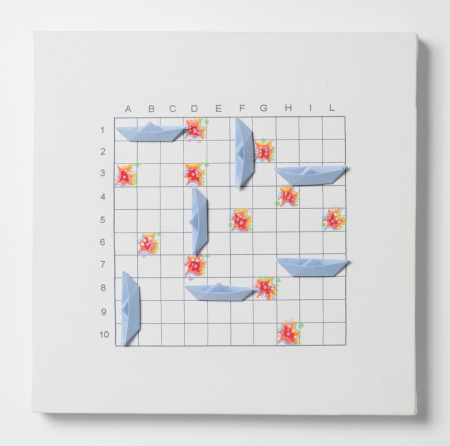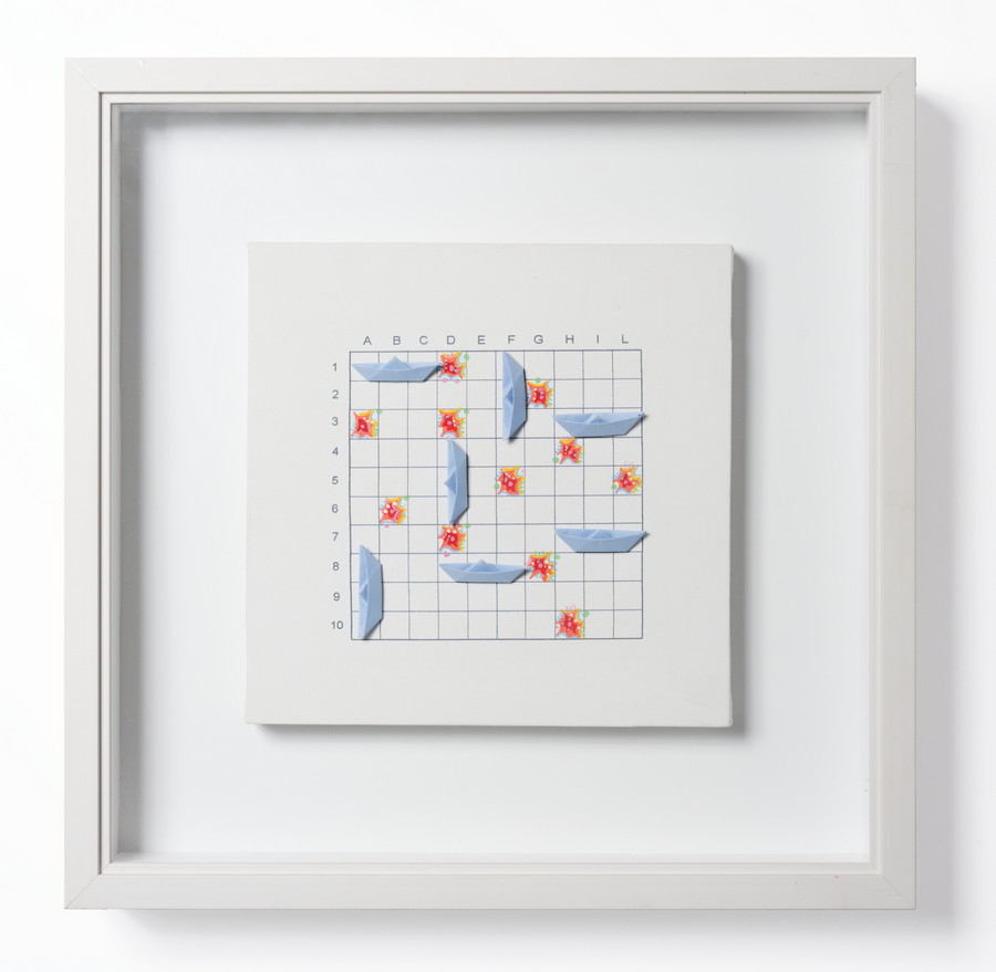 GUSMAROLI RICCARDO (n. 1963) SENZA TITOLO. Barche di carta su tela . Cm 20,00 x 20,00. sul retro: firma
