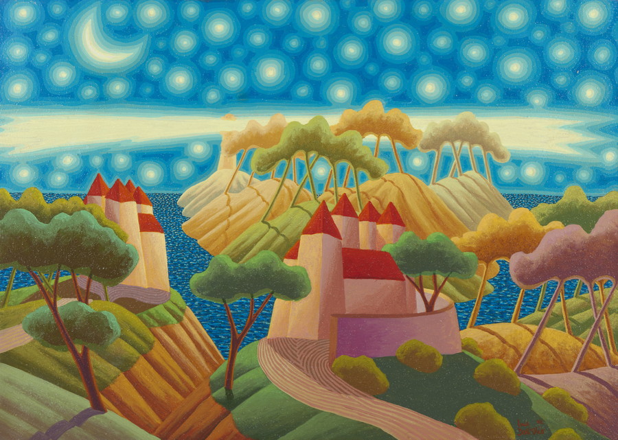 DALL'OLIO LUCA (n. 1958) NELL'ARIA SENTO LA TUA PRESENZA. 2001. Olio su tela. Cm 65,00 x 45,00. firma e data