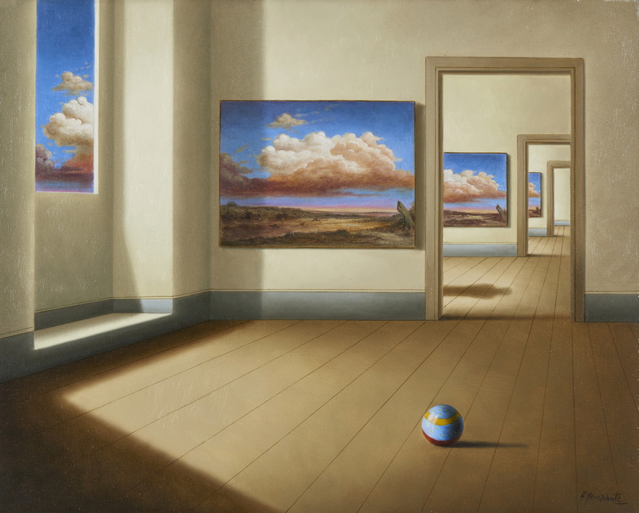 NUNZIANTE ANTONIO (n. 1956) LA STANZA DELLE NUVOLE . Olio su tela. Cm 50,00 x 40,00. firma