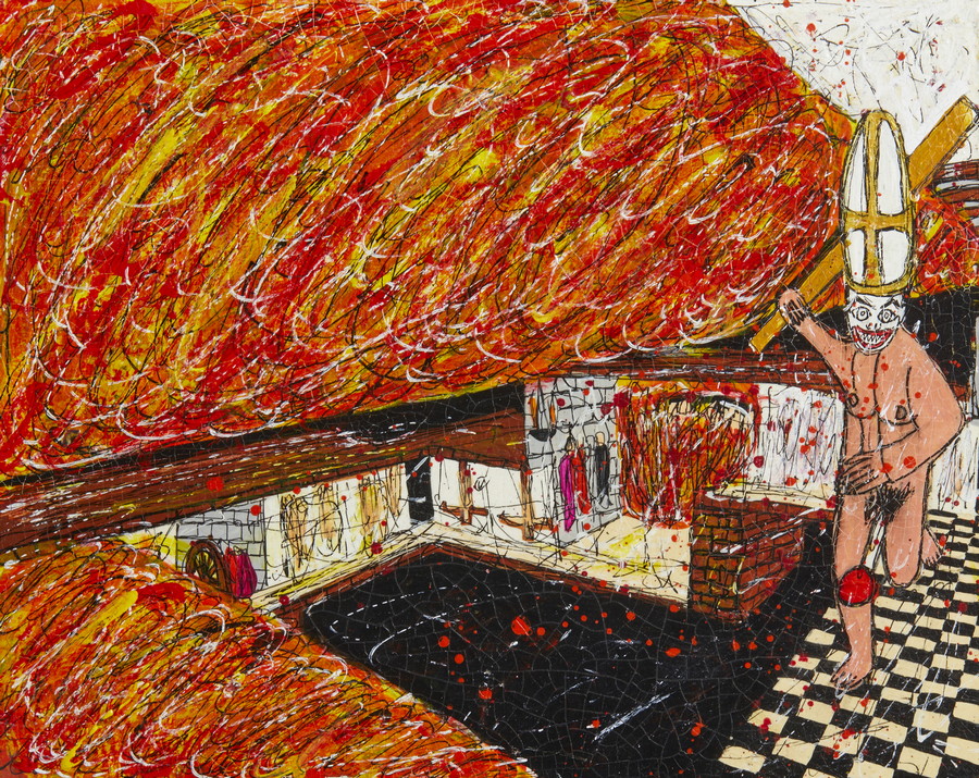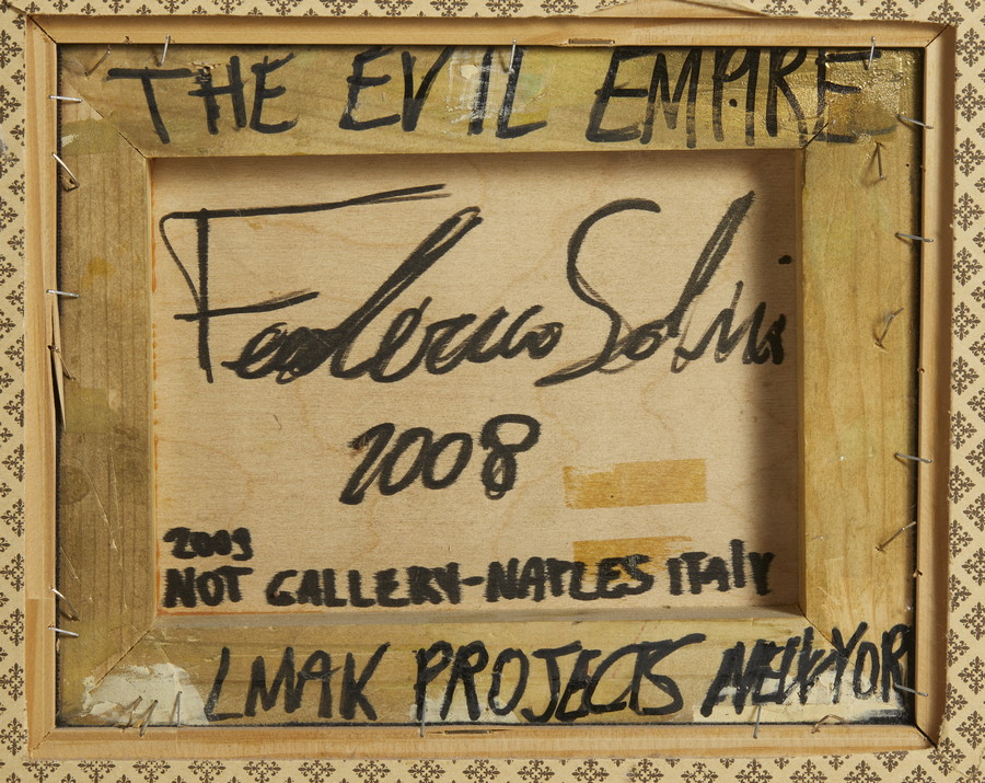 SOLMI FEDERICO (n. 1973) THE EVIL EMPIRE. 2008. tecnica mista su tavola. Cm 25,00 x 20,00. sul retro: firma, data e titolo. Cornice presente