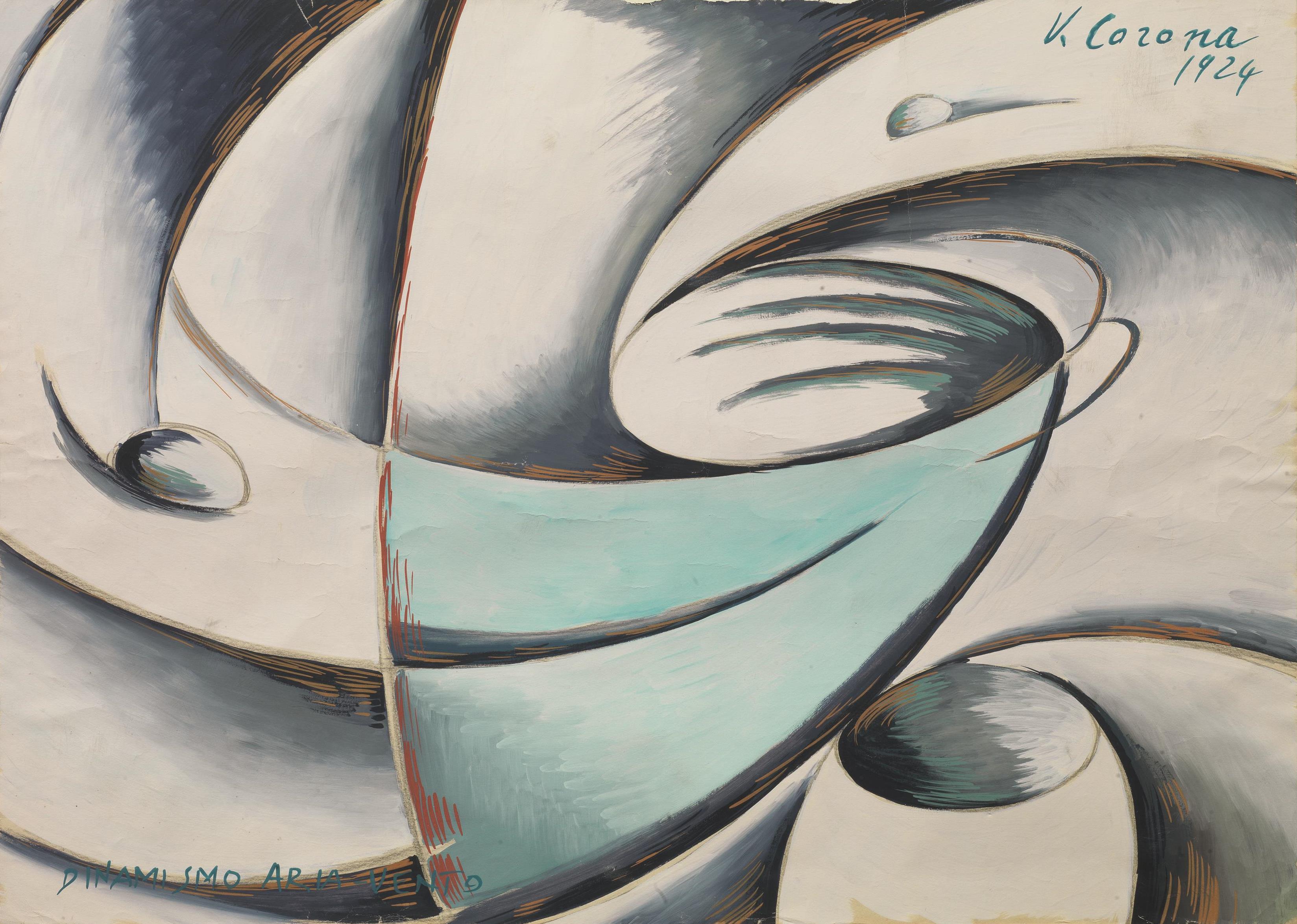 Vittorio Corona (Palermo 1901 - Roma 1966) DINAMISMO ARIA VENTO tempera e gouache su carta applicata su tavola, cm 50x70 firmato, titolato e datato eseguito nel 1924