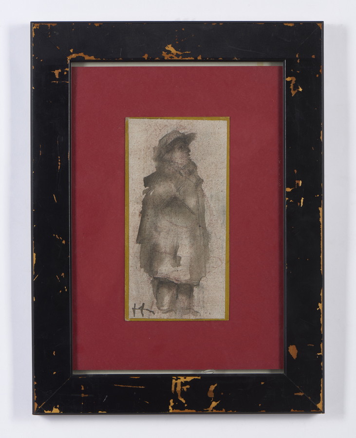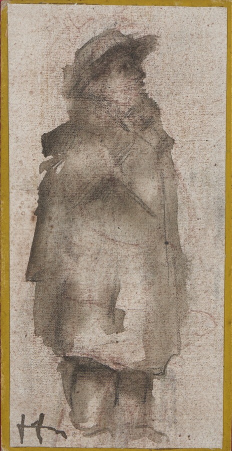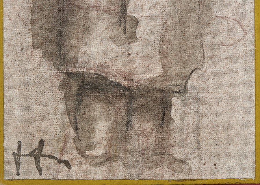 AUTORE NON IDENTIFICATO SENZA TITOLO. acquarello su tela applicata su cartoncino. Cm 11,00 x 24,30. firma