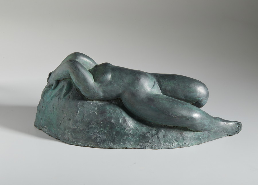 LUPPINO SUSAN (n. 1945) SDRAIATA SULLA ROCCIA. 2001. terracotta. Cm 26,50 x 64,00 x 25,50. firma