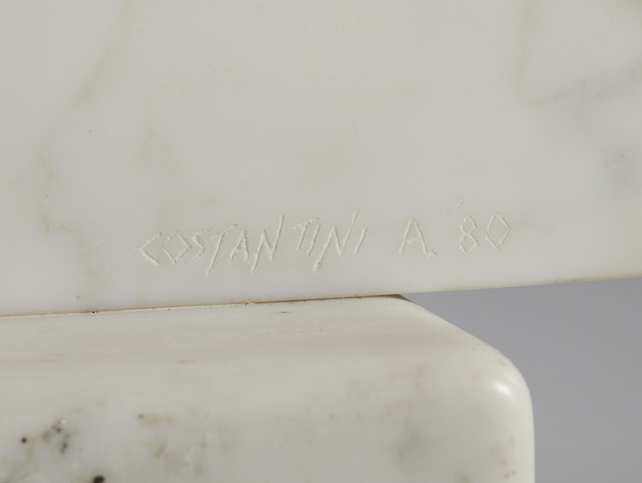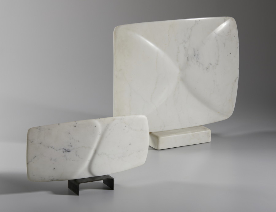 COSTANTINI ANTONIO LOTTO COMPOSTO DA N.2 OPERE.TENSIONE, 1980; SENZA TITOLO, 1982. Marmo di Carrara.. Cm 54,00 x 42,00 x 4,00. firma, data