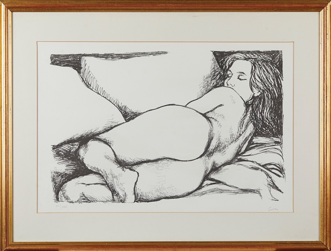 RENATO GUTTUSO (Bagheria 1911 - Roma 1987) "Nudo disteso". Litografia a colori su carta. Cm: 43,5x65,5. Opera firmata in basso a destra Guttuso. Reca tiratura in basso a sinistra XIII/XXV.