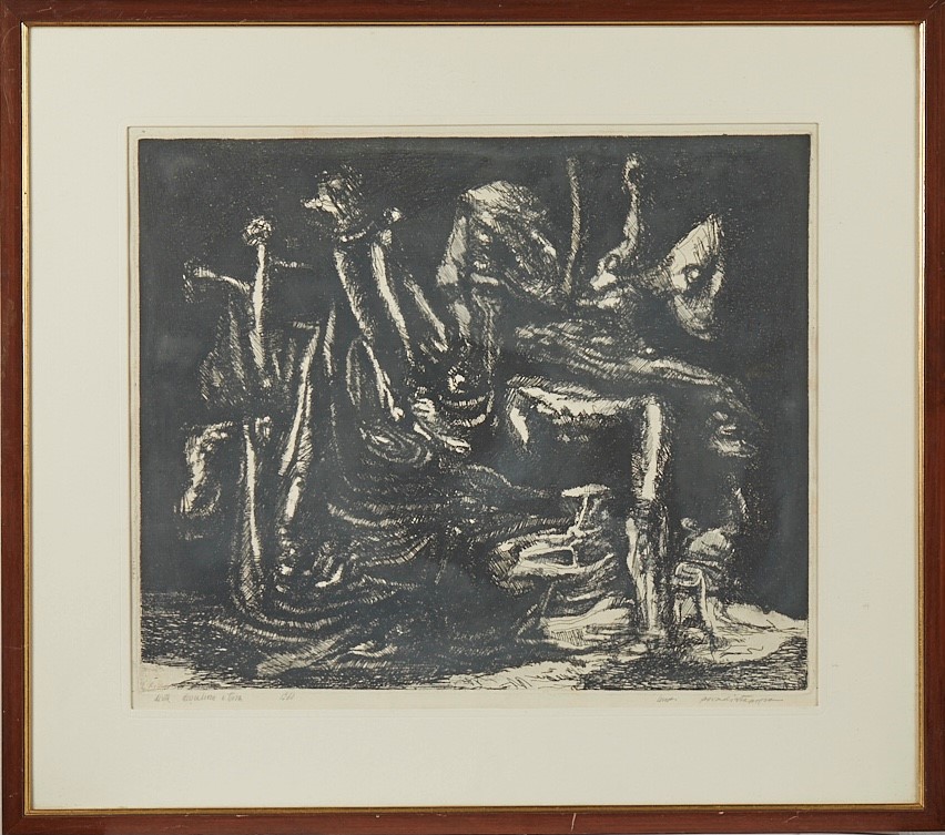 LUCIANO DE VITA (Ancona 1929 - Bologna 1992) "Senza titolo", 1960. Acquaforte su carta. Cm lastra: 39,5x47. Opera firmata e datata in basso a sinistra de Vita 1960. Reca numeri di tiratura in basso a destra prova di stampa.