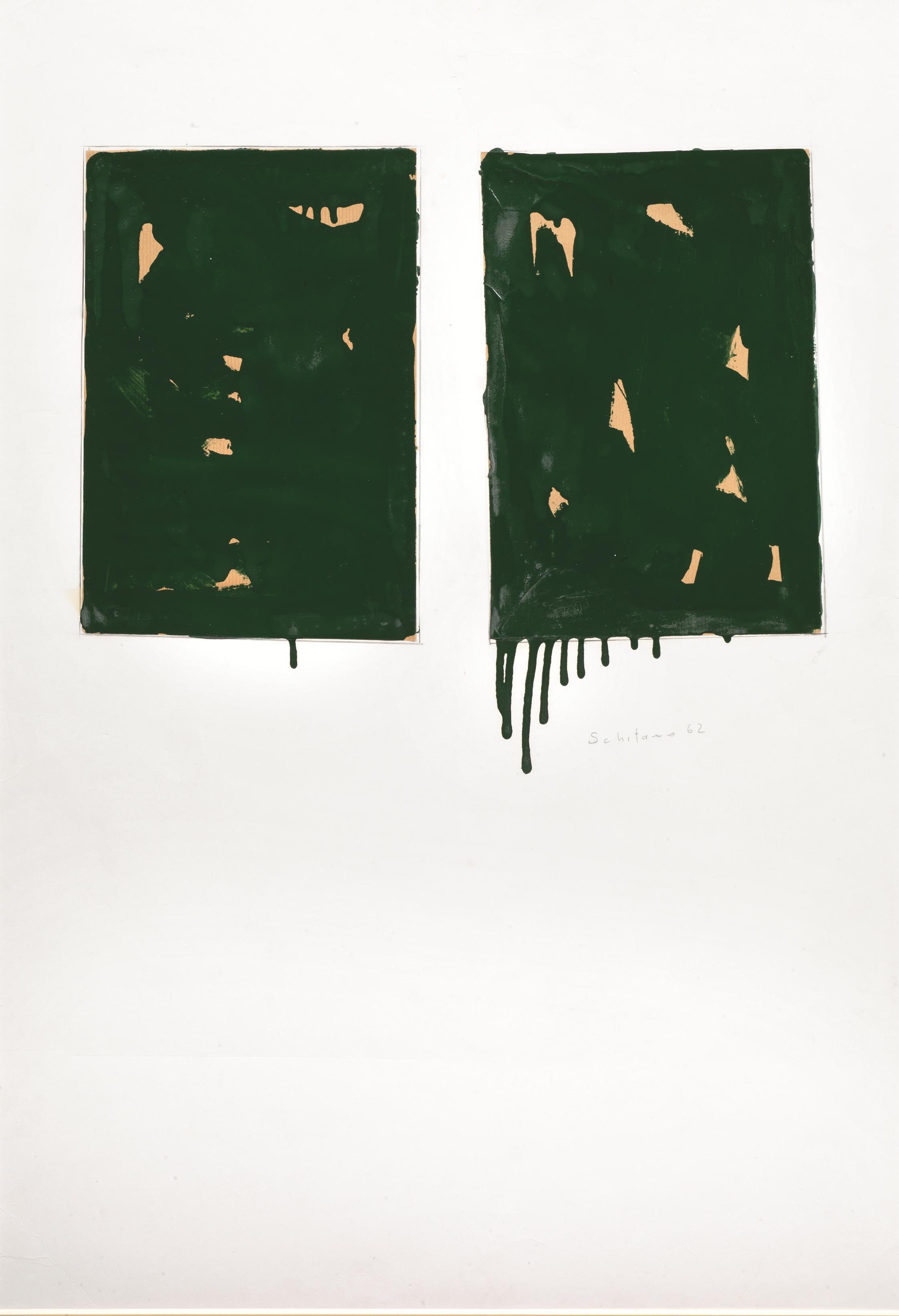 Mario Schifano (Homs 1934 - Roma 1998) SENZA TITOLO smalto e collage su carta, cm 100x70 firmato e datato eseguito nel 1962 L’opera è in fase di esame presso l’Archivio Mario Schifano Provenienza: Collezione privata, Milano