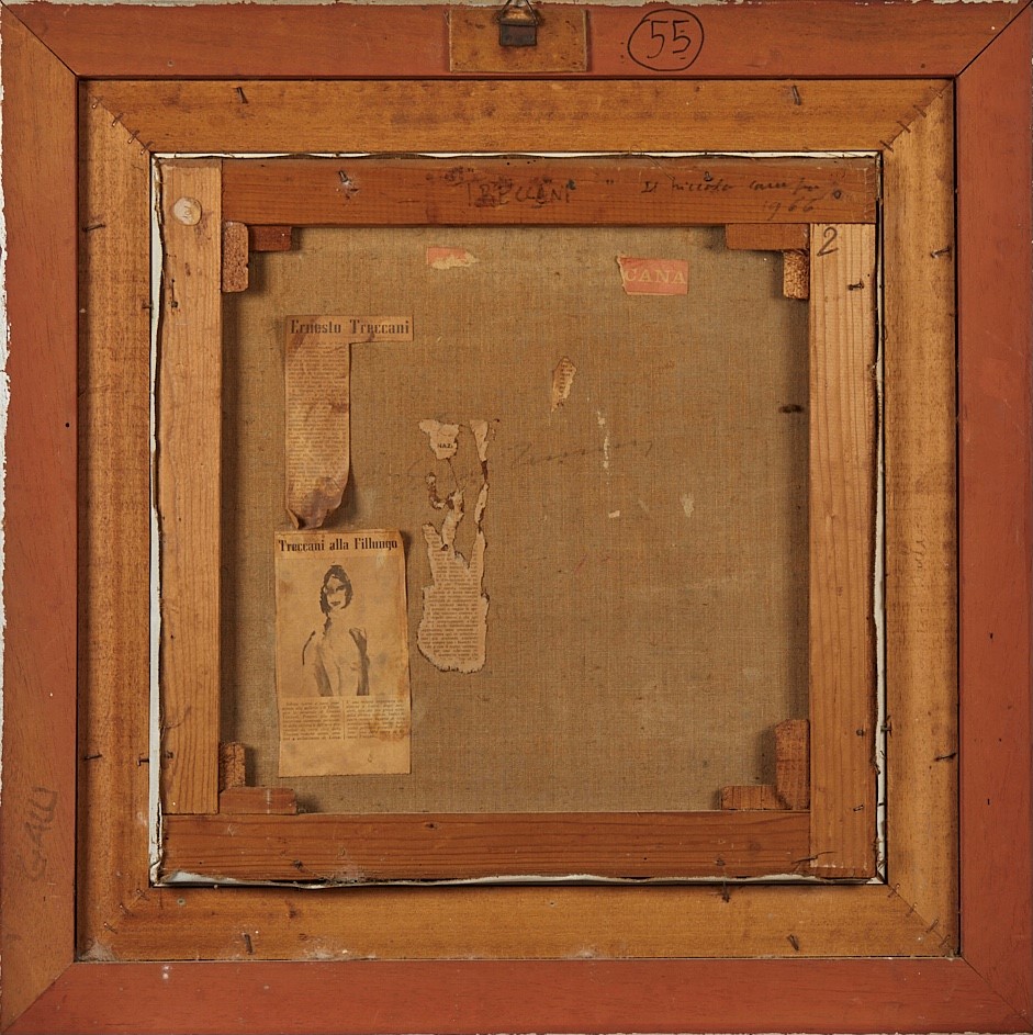ERNESTO TRECCANI (Milano 1920 - Milano 2009) "Il piccolo campo", 1966. Olio su tela. Cm 50x50. Opera firmata, intitolata e datata Treccani, Il piccolo campo, 66.