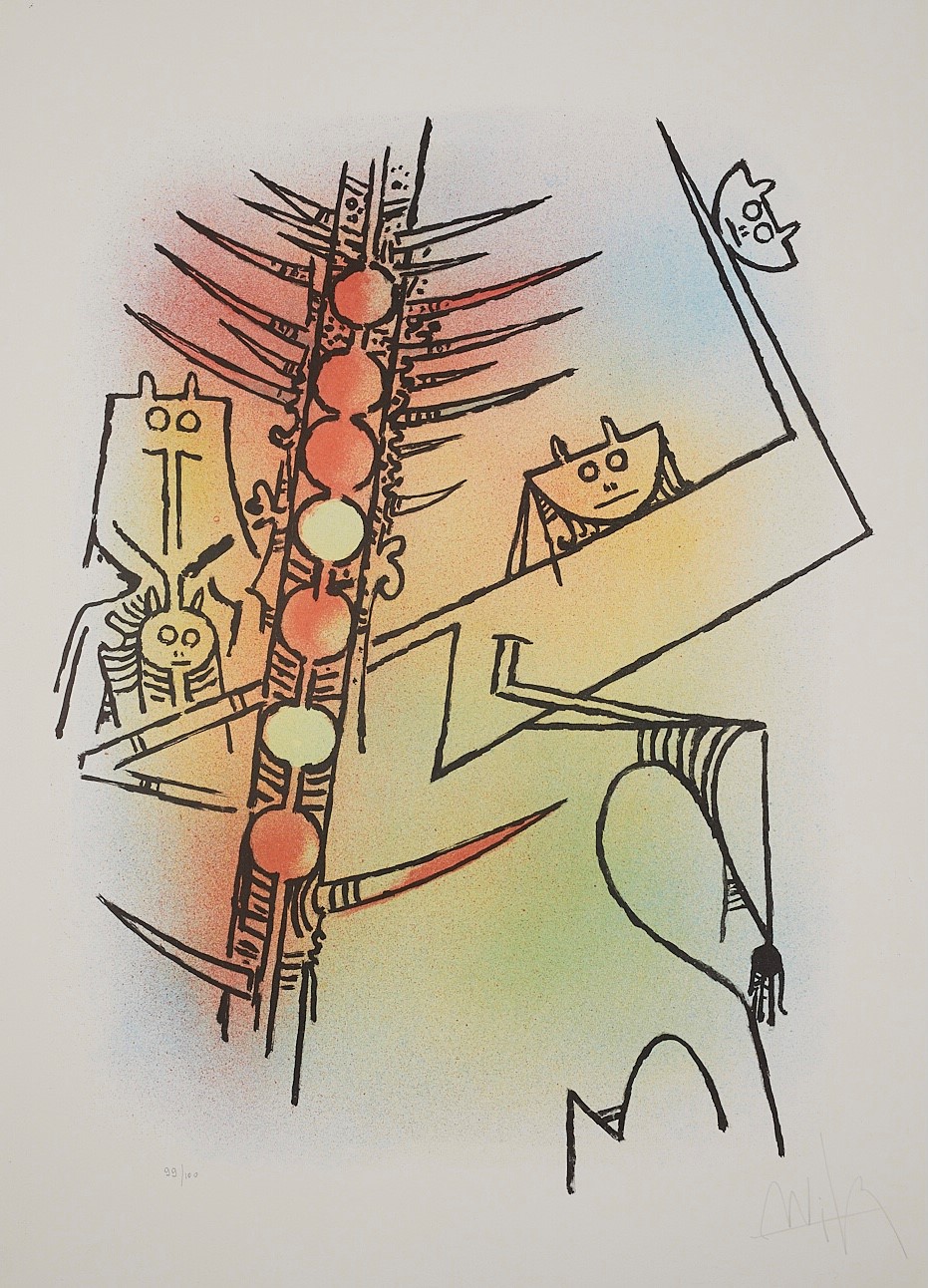 Wifred Lam (Sagua la Grande, 08/12/1902 - Parigi, 11/09/1982) “Le Feu Vert” Litografia a colori su carta Cm foglio: 70x50