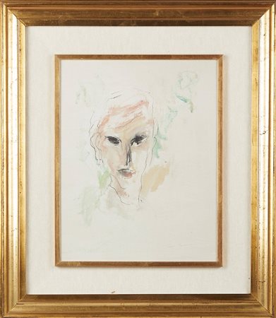 ERNESTO TRECCANI (Milano 1920 - Milano 2009) "Figura". Olio su tela. Cm 42x32,5. Opera firmata in basso a destra Ernesto Treccani. Al retro reca timbro della Galleria Forni di Bologna.