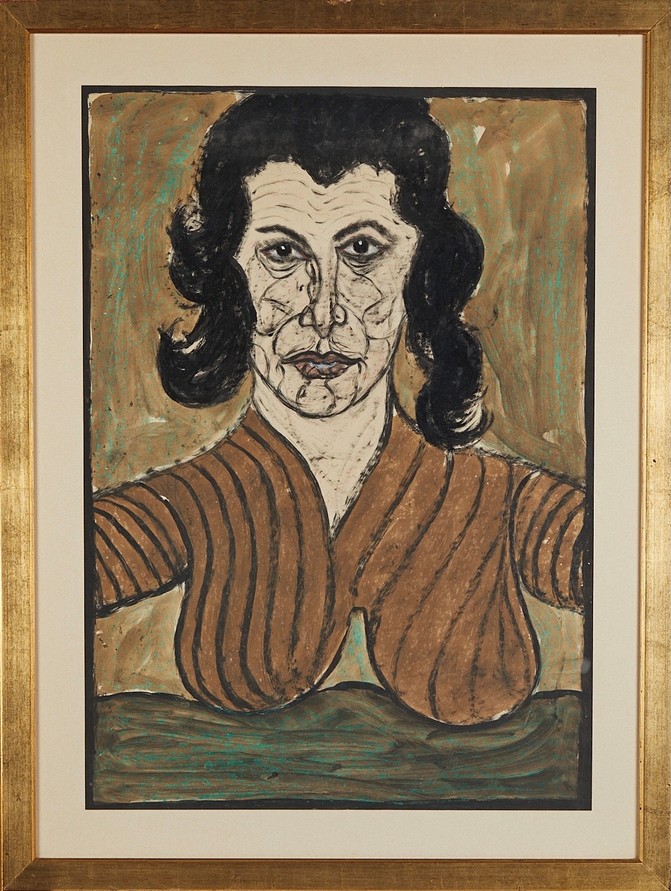 PIETRO GHIZZARDI (Viadana 1906 - Boretto 1986) "Figura", 1969. Tecnica mista su cartoncino. Cm 68x48,5.