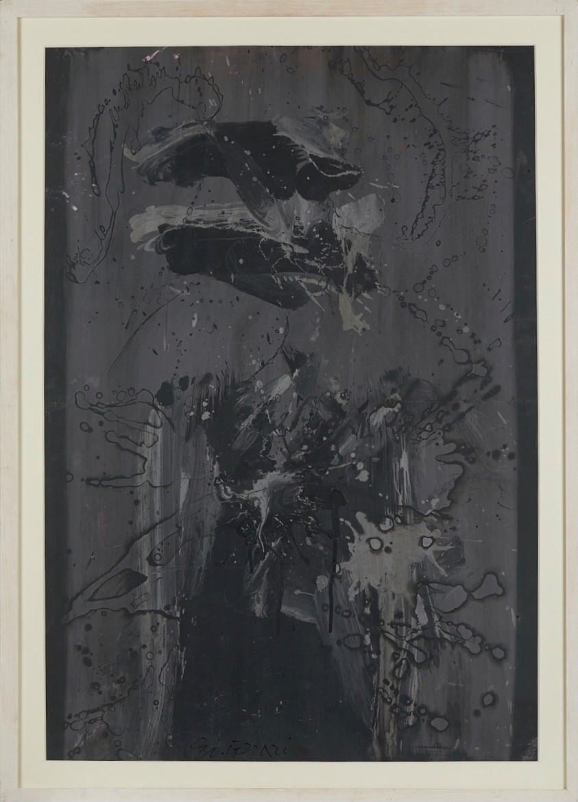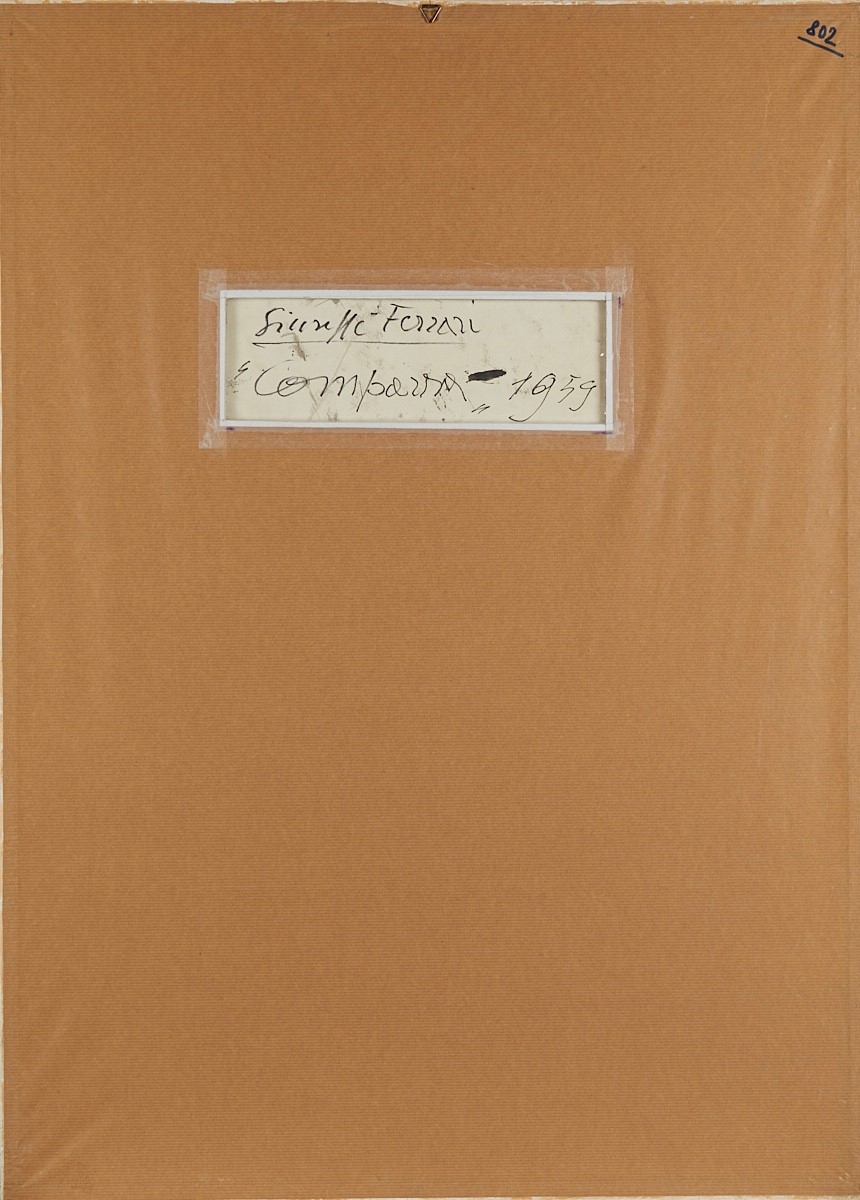 GIUSEPPE FERRARI (Bologna 1921 - 2011) "Comparsa", 1959. Acrilico su carta. Cm 77,5x53,5. Opera firmata, datata e intitolata al retro Giuseppe Ferrari, Comparsa 1959.