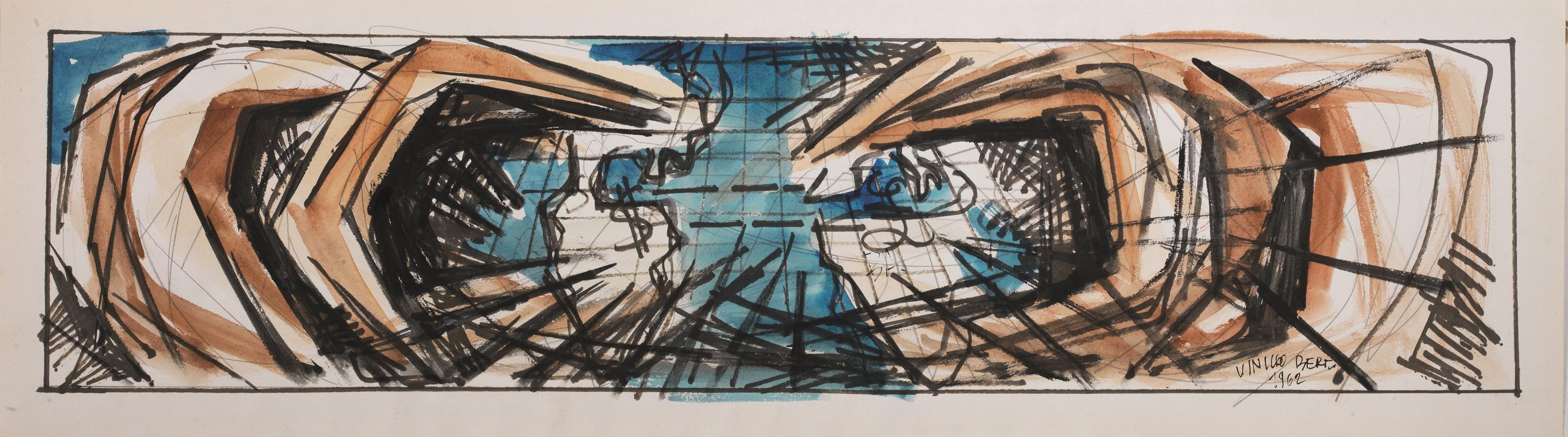 Vinicio Berti (Firenze 1921 - 1991) BOZZETTO PER BANCA BNC tempera, gouache e pennafeltro su carta cm 26x91 firmato e datato eseguito nel 1962