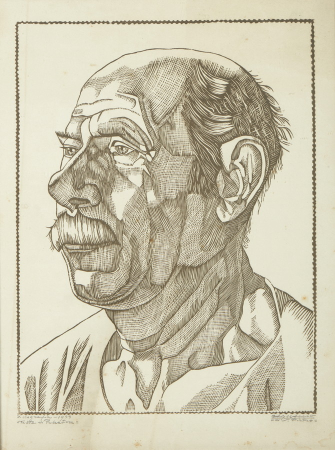 DI SAN PIETRO CAGNACCIO (1897 - 1946) TESTA DI PESCATORE. 1933. Xilografia. Cm 30,70 x 39,50. firma, data e titolo a matita