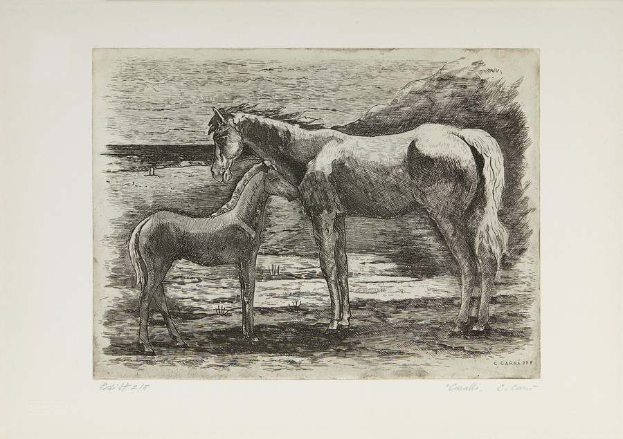 CARRA' CARLO (1881 - 1966) CAVALLI. 1928. acquaforte. Cm 50,50 x 35,00. firma, data, titolo a matita, es. p.d.a. 2/5