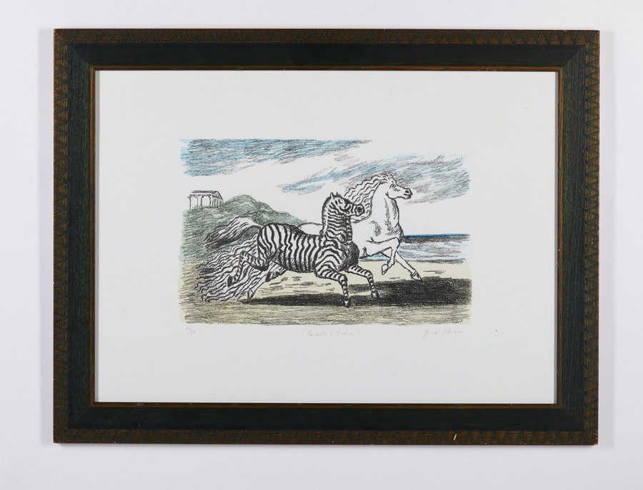 DE CHIRICO GIORGIO (1888 - 1978) CAVALLO E ZEBRA (PRIMA VERSIONE). 1974. litografia. Cm 70,00 x 50,40. firma, titolo e tiratura a matita, es. 66/90