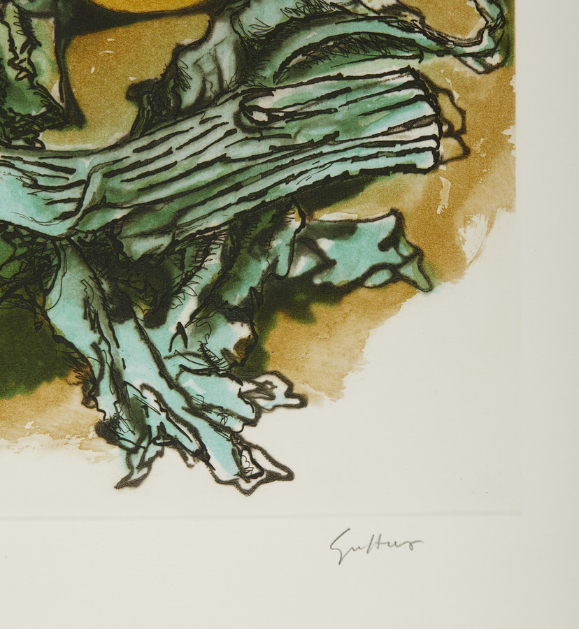 GUTTUSO RENATO (1912 - 1987) CARCIOFI E MELA. 1984. acquaforte, acquatinta e puntasecca su lastra di rame. Cm 70,00 x 88,00. firma e tiratura a matita, es.11/25