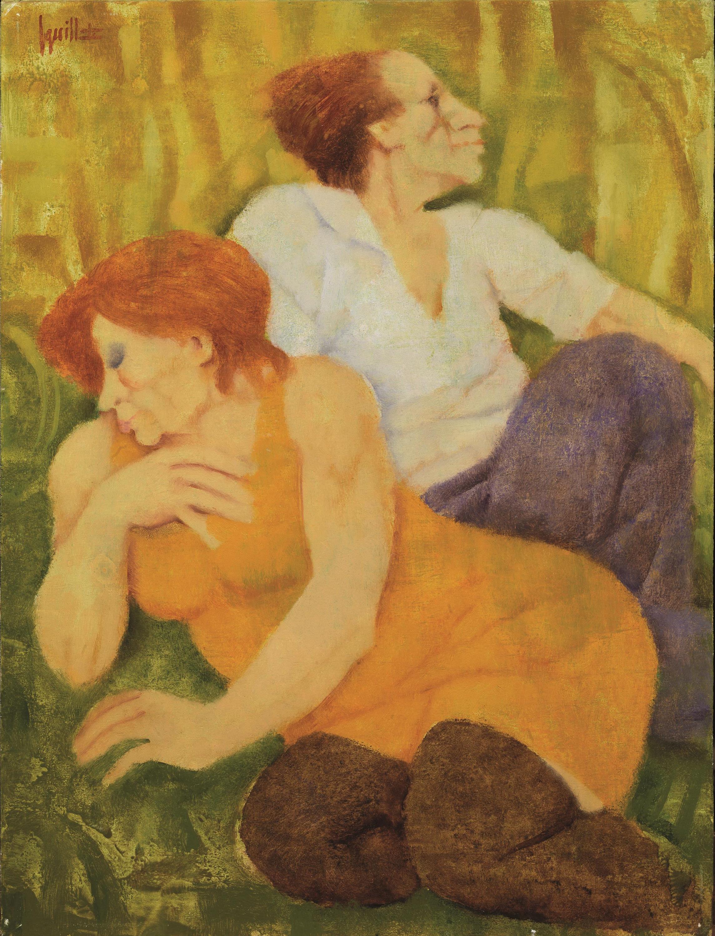 Remo Squillantini (Stia 1920 - 1996) RITRATTO DI COPPIA olio su tavola, cm 40x30 firmato Provenienza: Galleria d'Arte Il Setaccio, Sestri Levante Collezione privata, Savona