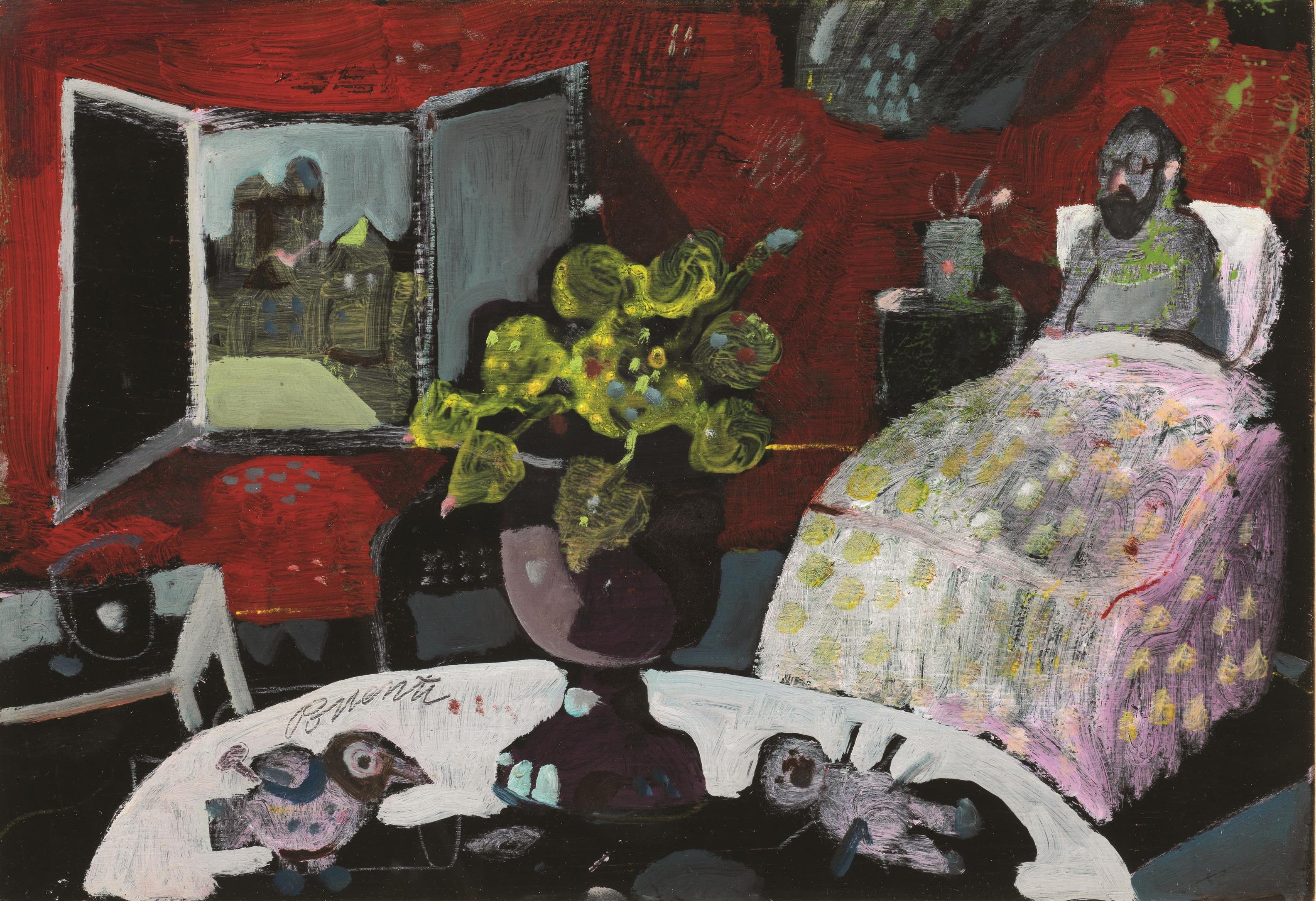 Antonio Possenti (Lucca 1933) CONCERTO olio su cartone telato, cm 40x60 firmato UNA STANZA olio su tavola, cm 20x30 firmato sul retro: firmato e titolato
