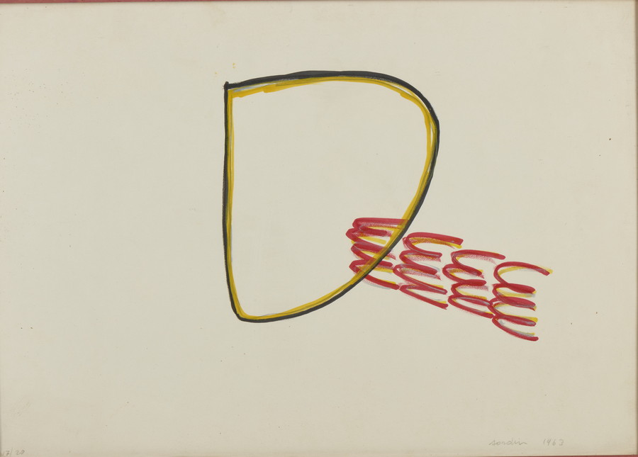 SORDINI ETTORE (n. 1934) SENZA TITOLO. 1963. Intervento su litografia.. Cm 49,00 x 34,50. firma, data e tiratura a matita, es. 17/20