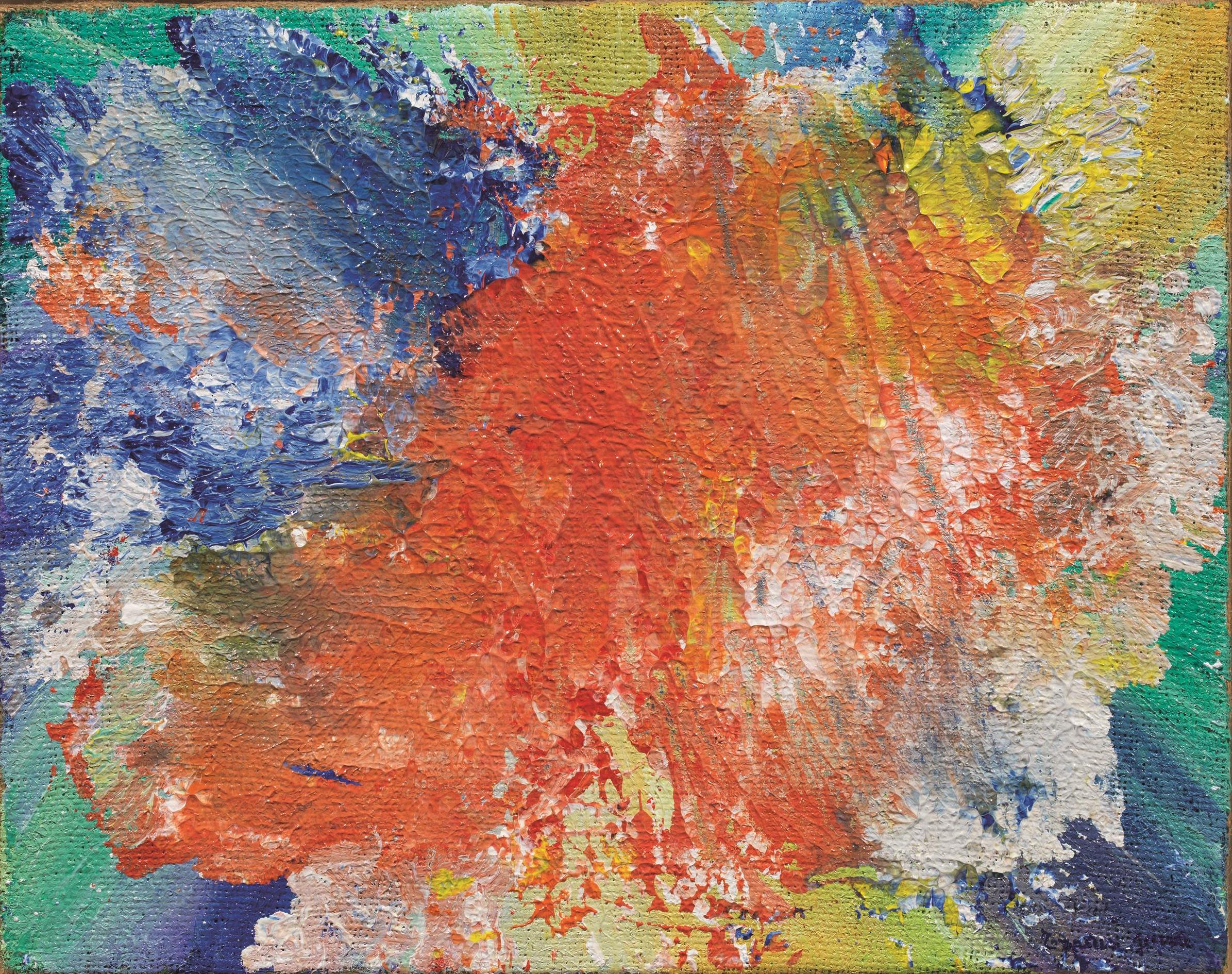 Luisella Traversi Guerra (Borgonovo 1944) DAL CENTRO acrilico su tela, cm 35x45 firmato eseguito nel 2014 L'opera è accompagnata da autentica dell'artista su fotografia