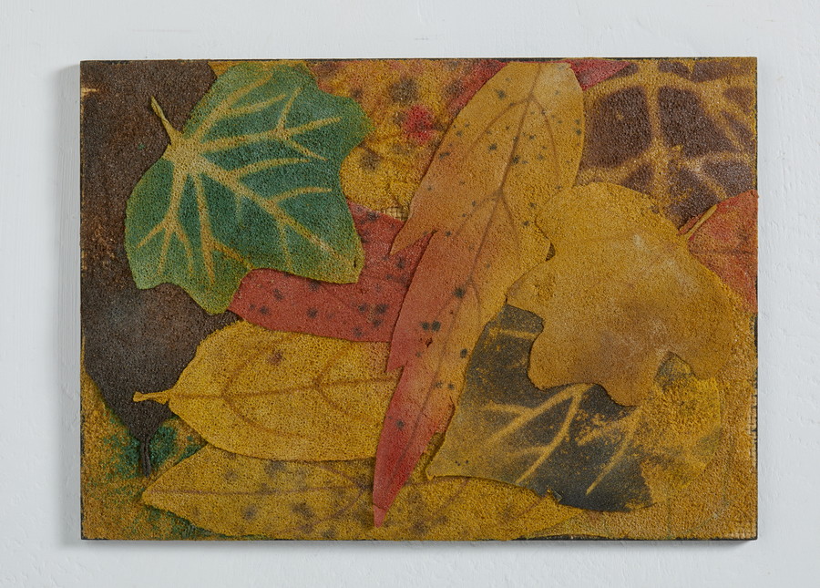 GILARDI PIERO (1942 - 2023) FOGLIE CADUTE. 1978. multiplo in poliuretano espanso sagomato e colorato a mano, applicato su tavoletta. Cm 20,00 x 14,50 x 5,00. sul retro: firma, data e tiratura, es. 42/120