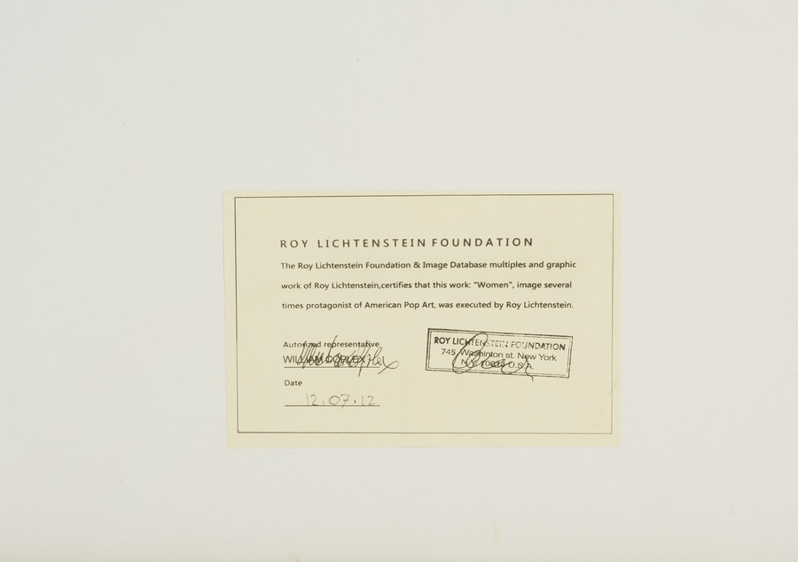 LICHTENSTEIN ROY (1923 - 1997) (AFTER) WOMEN IMAGE. Stampa offset a colori.. Cm 91,00 x 91,00. sul retro: etichetta di Roy LICHTENSTEIN Foundation firmata da William Coplex