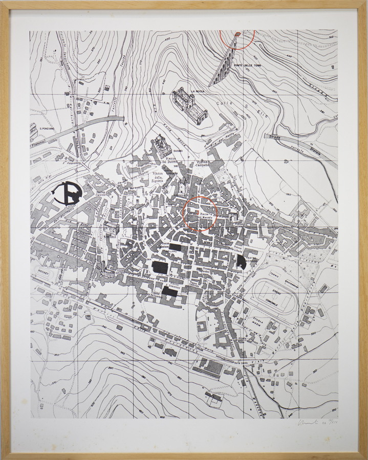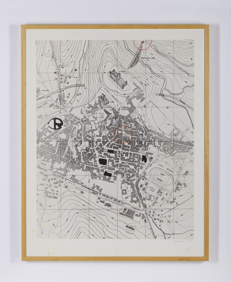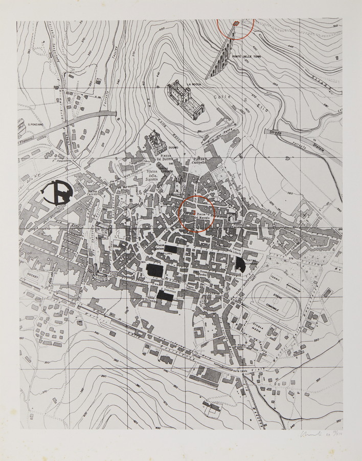 CHRISTO' (n. 1935) & JEANNE-CLAUDE (1935 - 2009) CITY MAP, PACKED FOUNTAIN AND PACKED TOWER, SPOLETO. 1968. Serigrafia. Cm 65,00 x 82,50. firma e tiratura a matita, es. IV/XIV