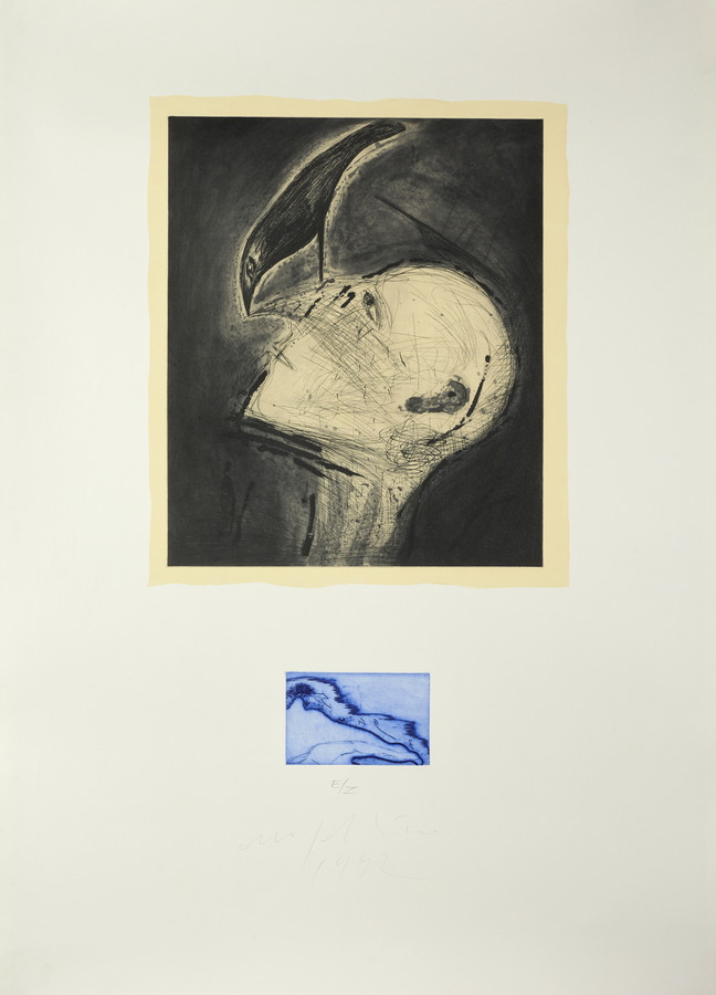 PALADINO MIMMO (n. 1948) SENZA TITOLO. 1992. Acquaforte e acquatinta. Cm 105,00 x 150,00. tiratura, data e firma a matita, es. E/Z