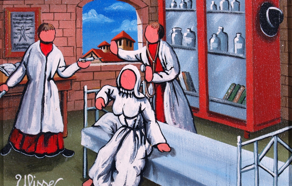 ULISSE (Osimo 1957) "Studio medico" 2007 Olio su tavola cm. H: 20.00 L: 30.00...