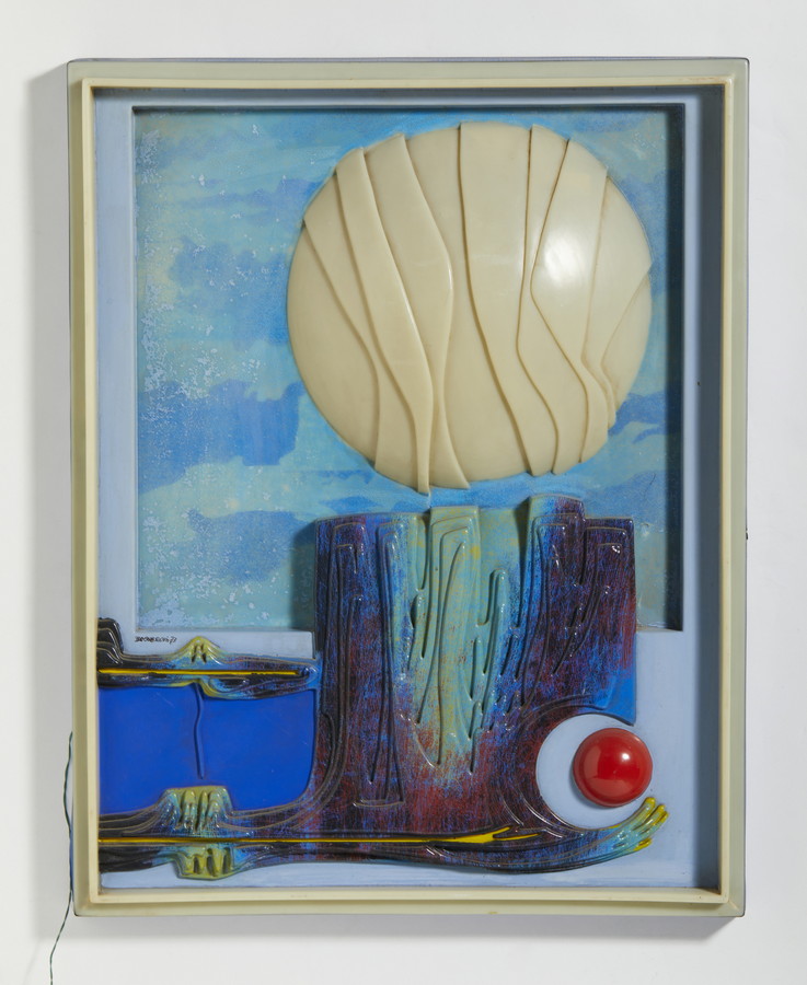 BECHERONI ELVIO (1934 - 2000) PREPAESAGGIO. 1973. polistirolo stampato e serigrafia a cinque colori. Cm 68,00 x 85,00 x 7,50. firma e data