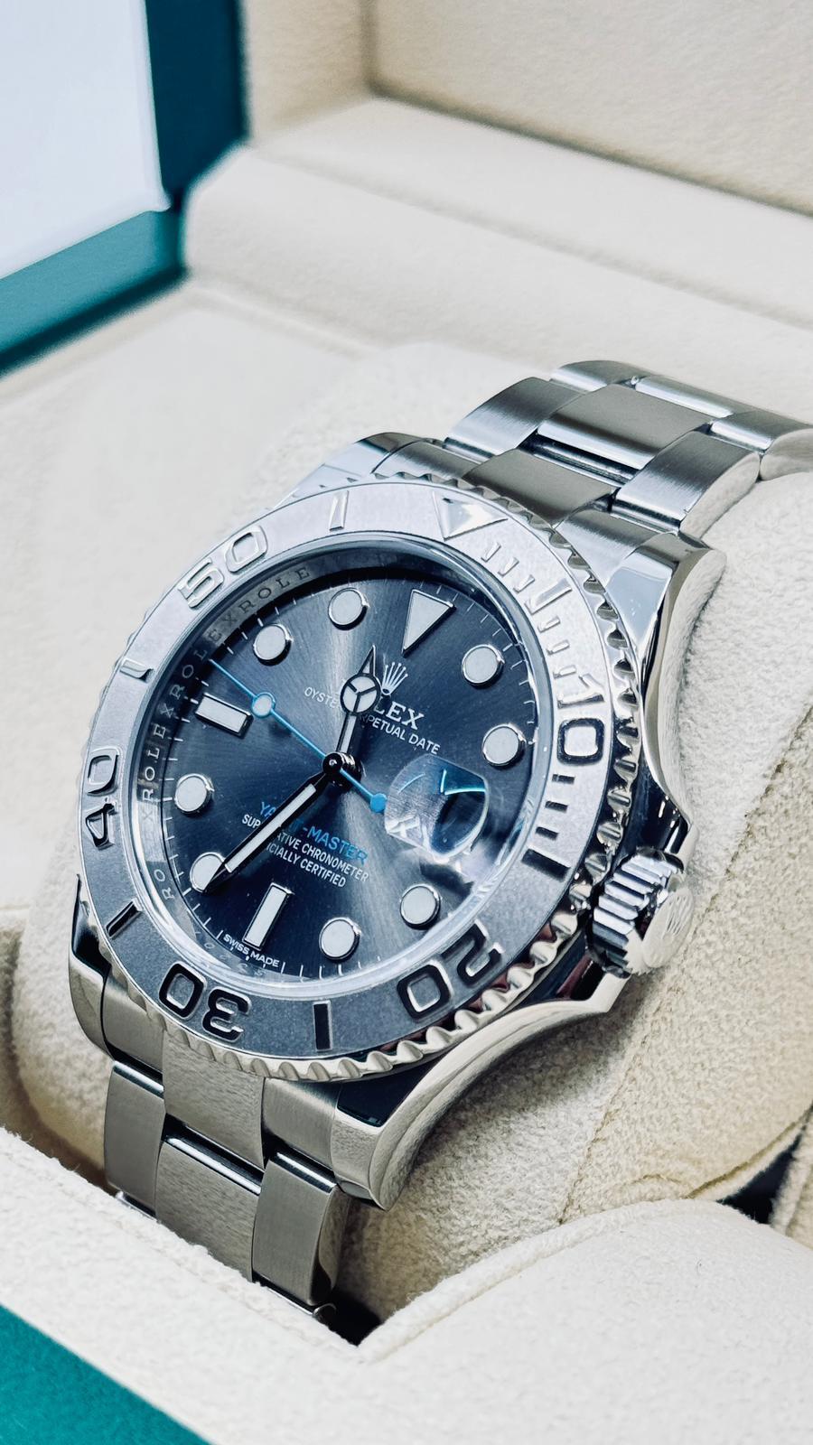 Marca Rolex Modello (Orologio) Yacht-Master 40 Numero di referenza 116622 Carica Automatico Materiale della cassa Acciaio Materiale cinturino Acciaio Anno di produzione 2017 anno approssimativo Condizione Usato (Ottimo) L'articolo presenta segni di usura lievi, come ad esempio graffi leggeri, ma non percepibili al tatto. Corredo documenti originali, no box Carica Automatico Cassa Materiale della cassa Acciaio Diametro 40 mm Impermeabile 10 ATM Materiale lunetta Platino Vetro Vetro zaffiro Numeri sul quadrante Senza numeri Cinturino Materiale cinturino Acciaio Colore cinturino Acciaio Chiusura Déployante Materiale chiusura Acciaio Funzioni Data - COMMISSIONE D’ASTA 25%