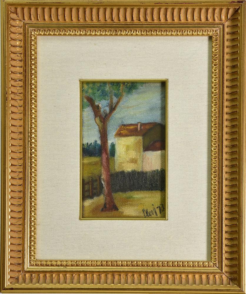 Giusto Levi CASA DI CAMPAGNA, 1973 olio su cartone telato, cm 18x11 firma e data
