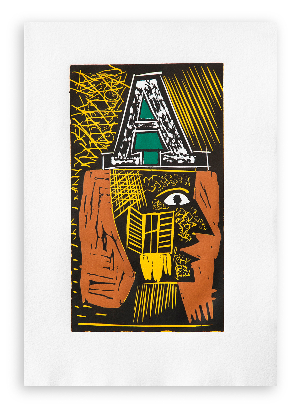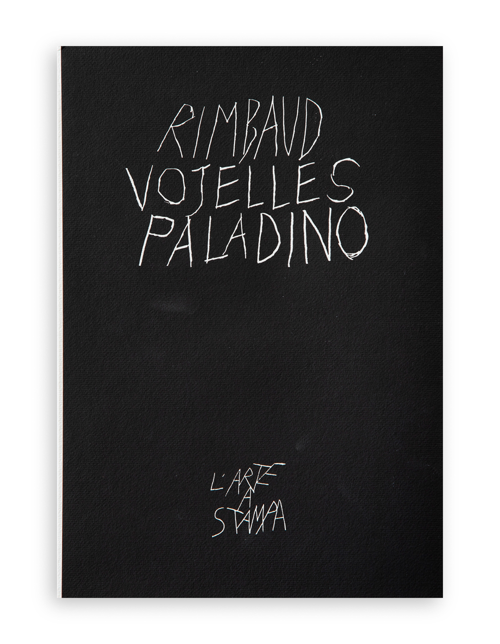 Edizione d'arte, realizzata su carta a mano della 'Cartiera di Sicilia', recante il sonetto 'Vojelle' di Arthur Rimbaud illustrato da 5 linoleum e un'acquaforte di Mimmo Paladino, quest'ultima recante firma a matita al fronte
