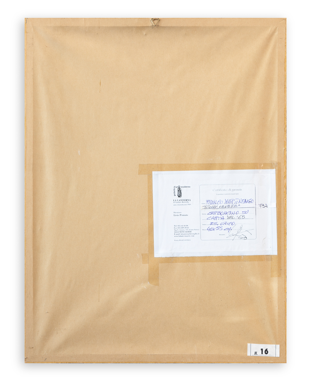 Certificato di garanzia a cura della Galleria La Lanterna (TO) al retro del cartoncino protettivo