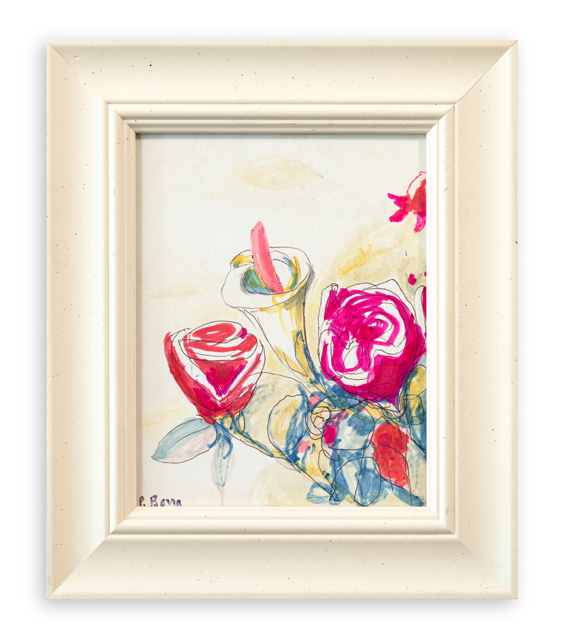 L'opera presenta un ulteriore disegno a china al retro di soggetto floreale