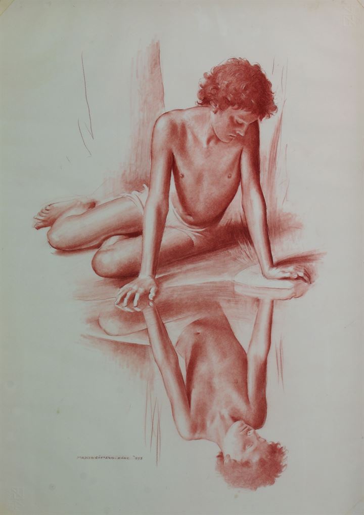 CAFFARO RORE MARIO Torino 1910 - 2001 "Narciso" 1978 70x50 sanguigna su carta...