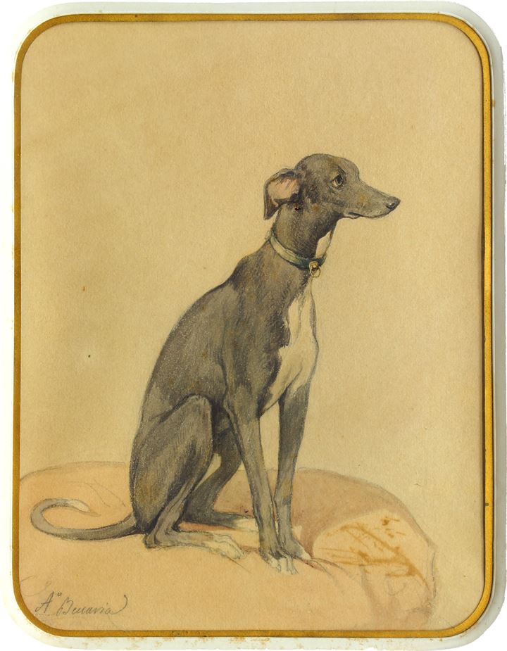 BECCARIA ANGELO Torino 1820 - 1897 "Piccolo levriere italiano" 24x18,5...