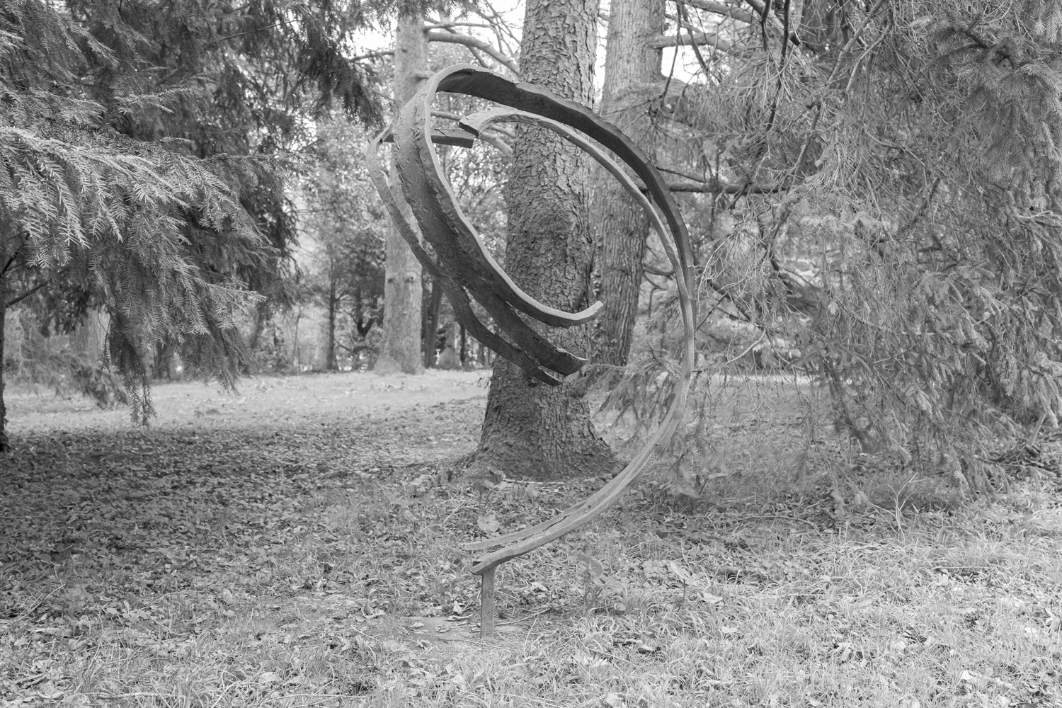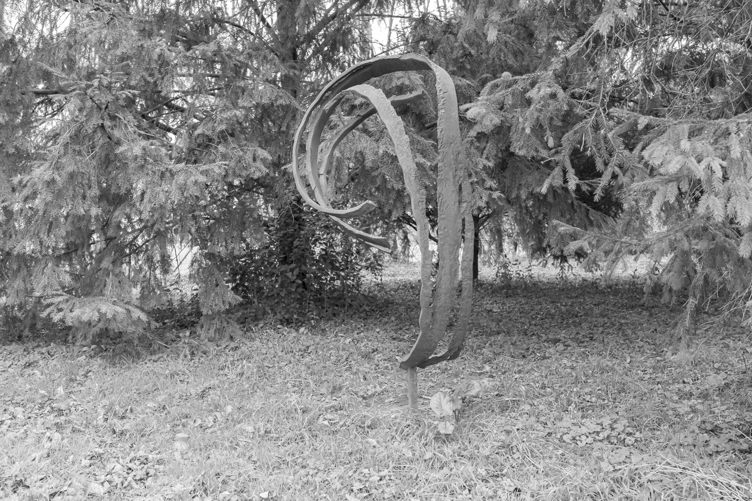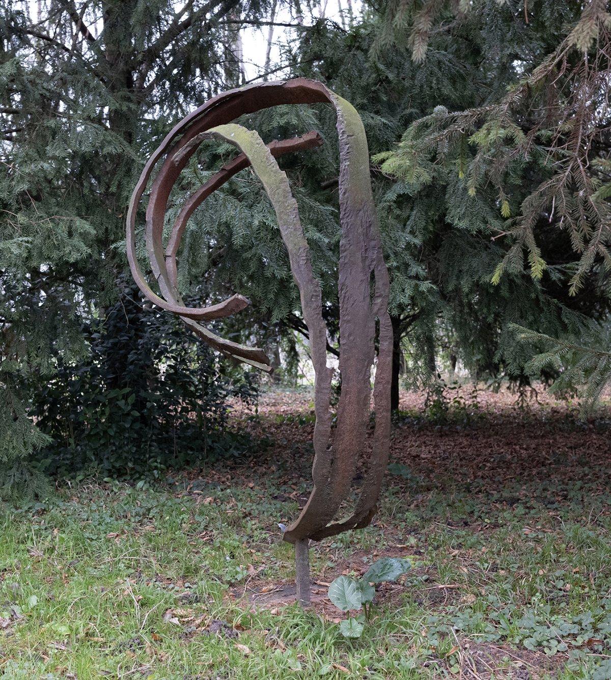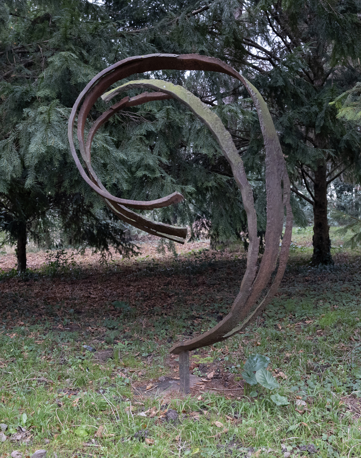 La ricerca di Benetton sulla natura è anche una ricerca sul comportamento dei materiali, che, nel caso del ferro, diventa tema centrale di poesia. "Frammento n. 2" - una lastra che si arriccia sotto la forza del taglio dello scalpello in forgia - è probabilmente lo studio del comportamento del metallo non costretto da un progetto. Infatti, quest'opera - pensata per l'esterno - risulta completamente diversa se posizionata in natura o in un contesto urbano. In rapporto con gli alberi è estremamente armoniosa non solo nella forma libera, ma persino negli effetti della superfice che sembra diventare corteccia. In contesto urbano invece si stacca nettamente dalle forme rigide dell'architettura e le contrasta. In questo modo, potremmo dire, Benetton ha consentito al metallo di rivelare la sua propria forma.