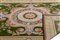 Il tappeto, ritenuto novecentesco in sede di catalogazione d'asta, riprende motivi Napoleone III, tipici Aubosson o, preferibilmente Savonnerie in considerazione della annodatura del vello. L’apparato mostra un campo verde con al centro un medaglione circolare circondato da una fascia di motivi floreali, con ghirlande e cornucopie. Interessante la bordura a fondo nocciola con motivo a foglie allungate e, agli angoli, fiori a rosetta.
