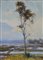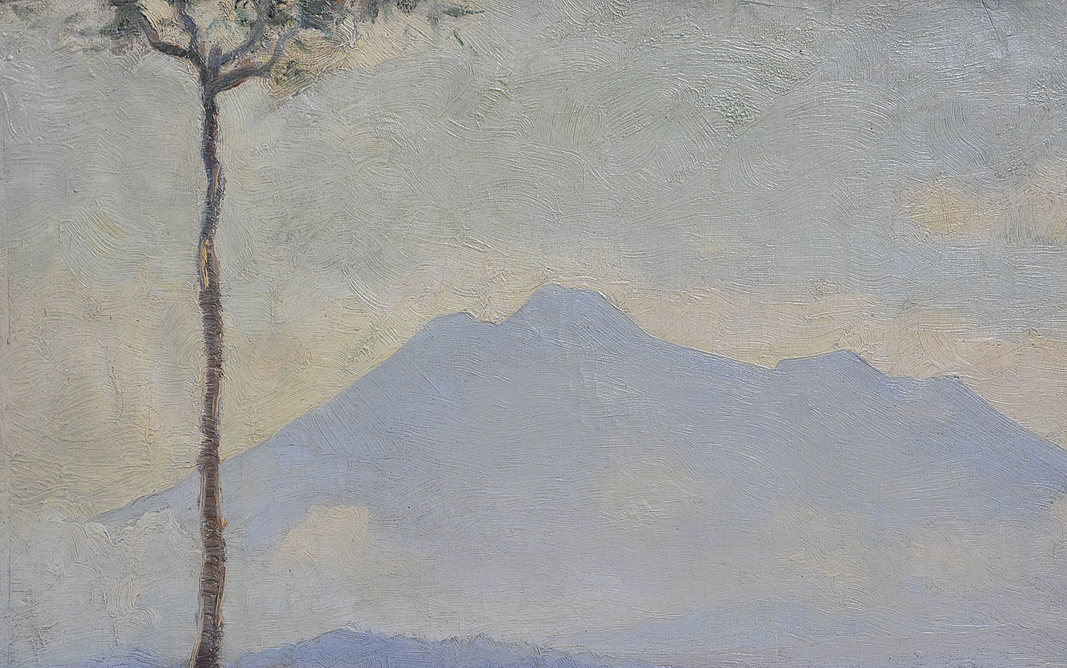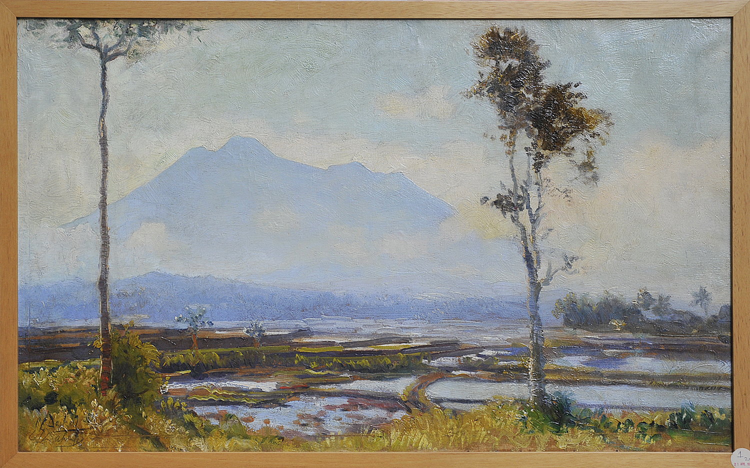 Carel Lodewijk Dake Junior (1886 - 1946) Paesaggio Sawah con un vulcano sullo sfondo