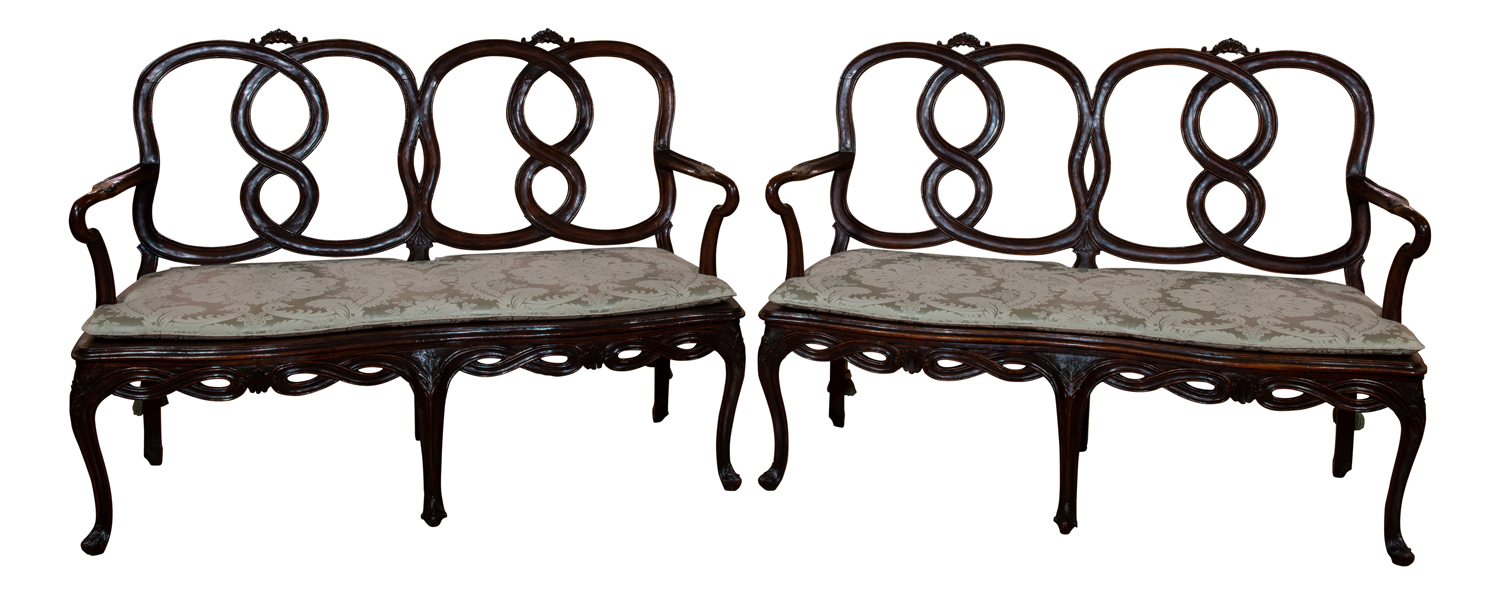 Venezia (II quarto del XVIII secolo) Due divanetti con schienali a fasce con intagli ad otto