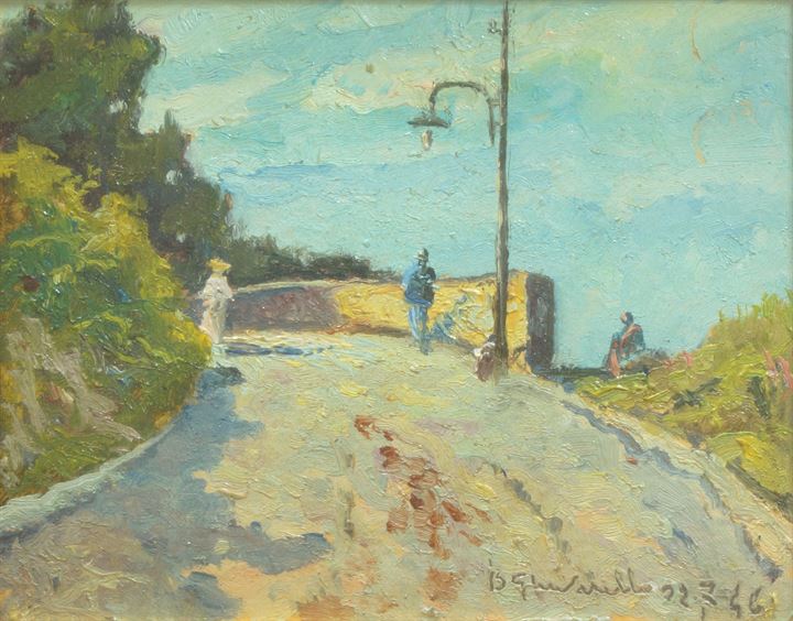 GHIVARELLO BENEDETTO Torino 1882 - 1955 "Strada con lampione" 22-07-46...