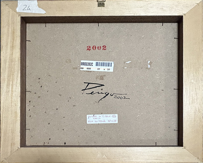 RENATO PENGO, "Oltre il titolo", 2002, olio su tela applicata su faesite, dim. 37x37 cm. Al verso: firma e anno, etichetta con titolo, anno, tecnica, dimensioni Opera con archiviazione fotografica. Opera con cornice